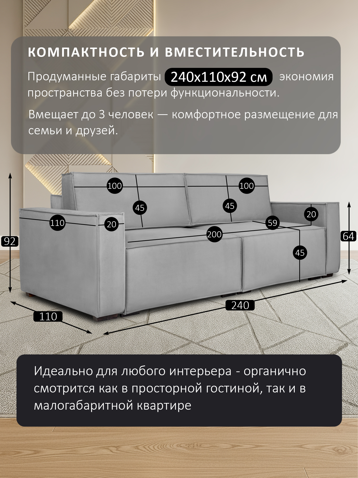 ДхГхВ: 215х95x92 см