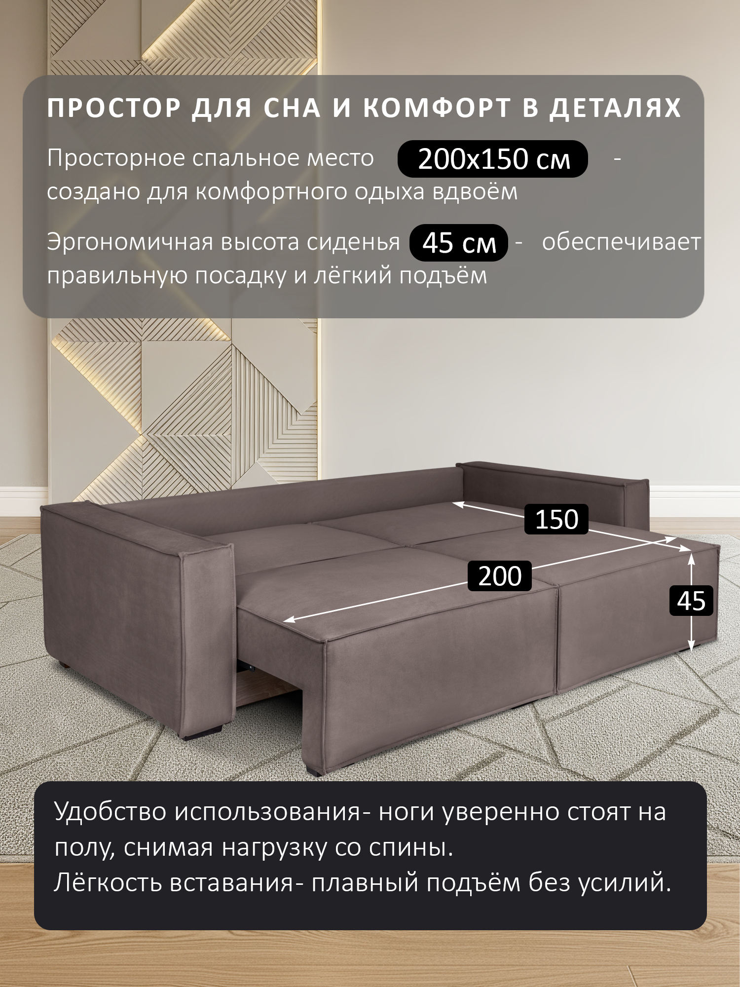 размер спального места (ШхДхВ): 145х200х48