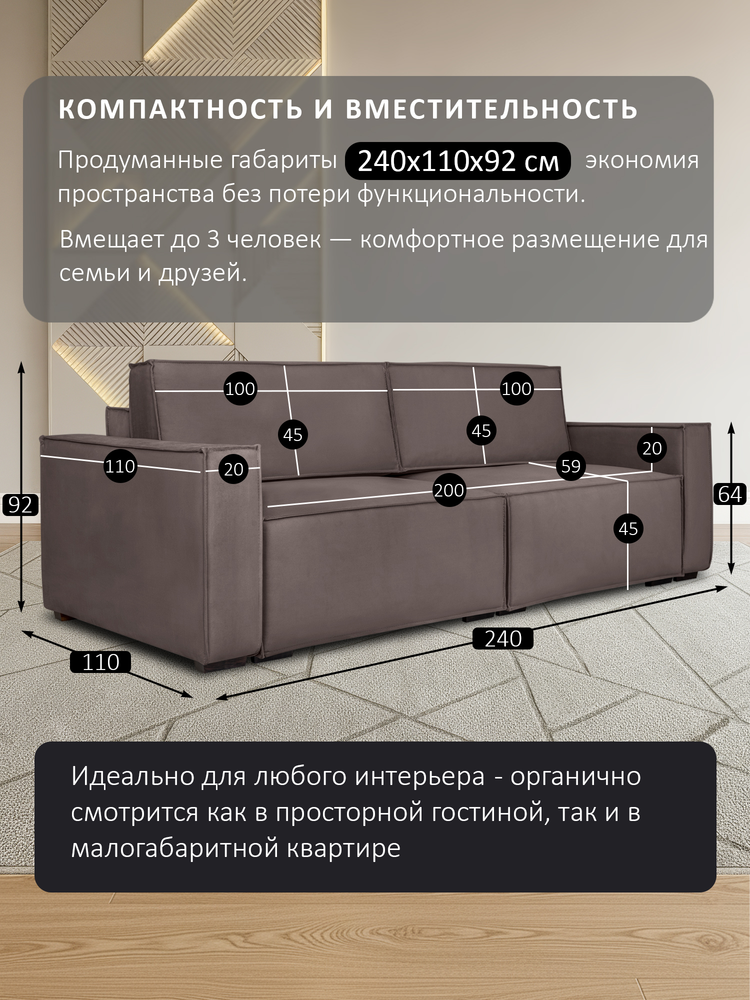 ДхГхВ: 240х163x91 см