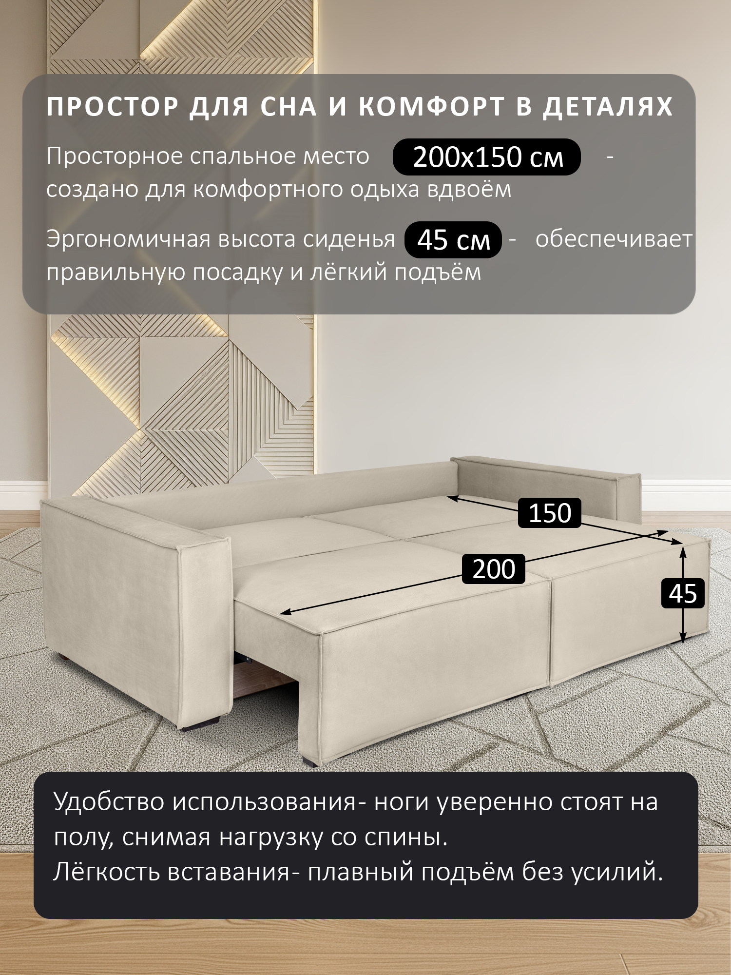 размер спального места (ШхДхВ): 145х200х48