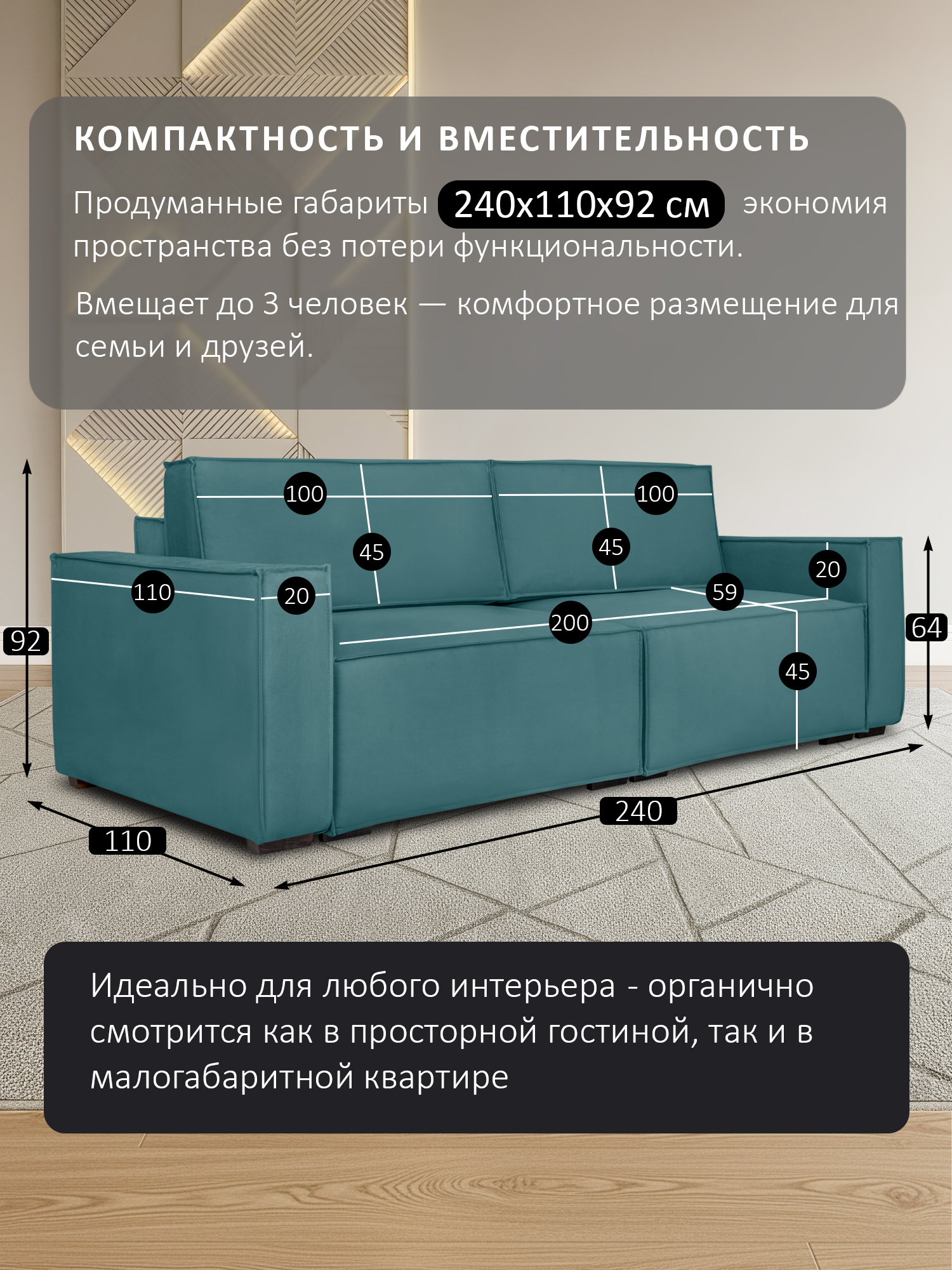 ДхГхВ: 240х163x91 см