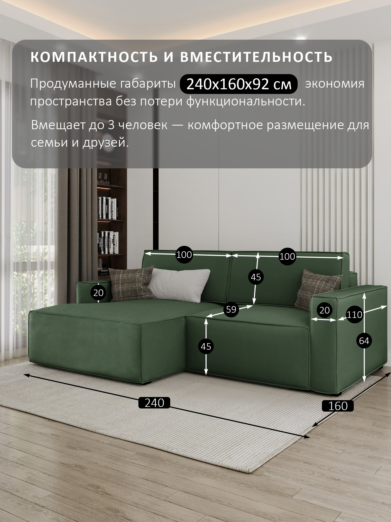 размер спального места (ШхДхВ): 200х150х45