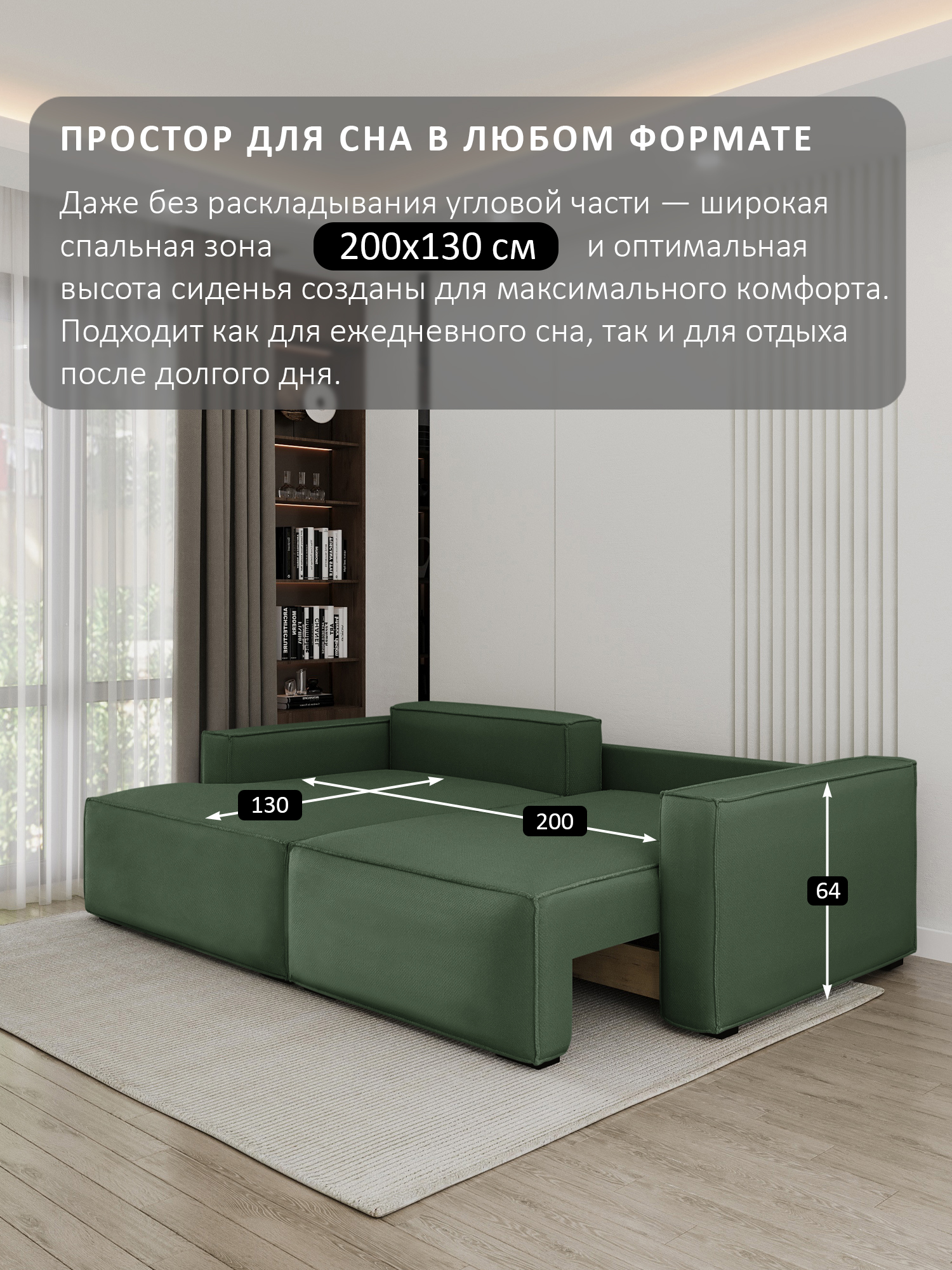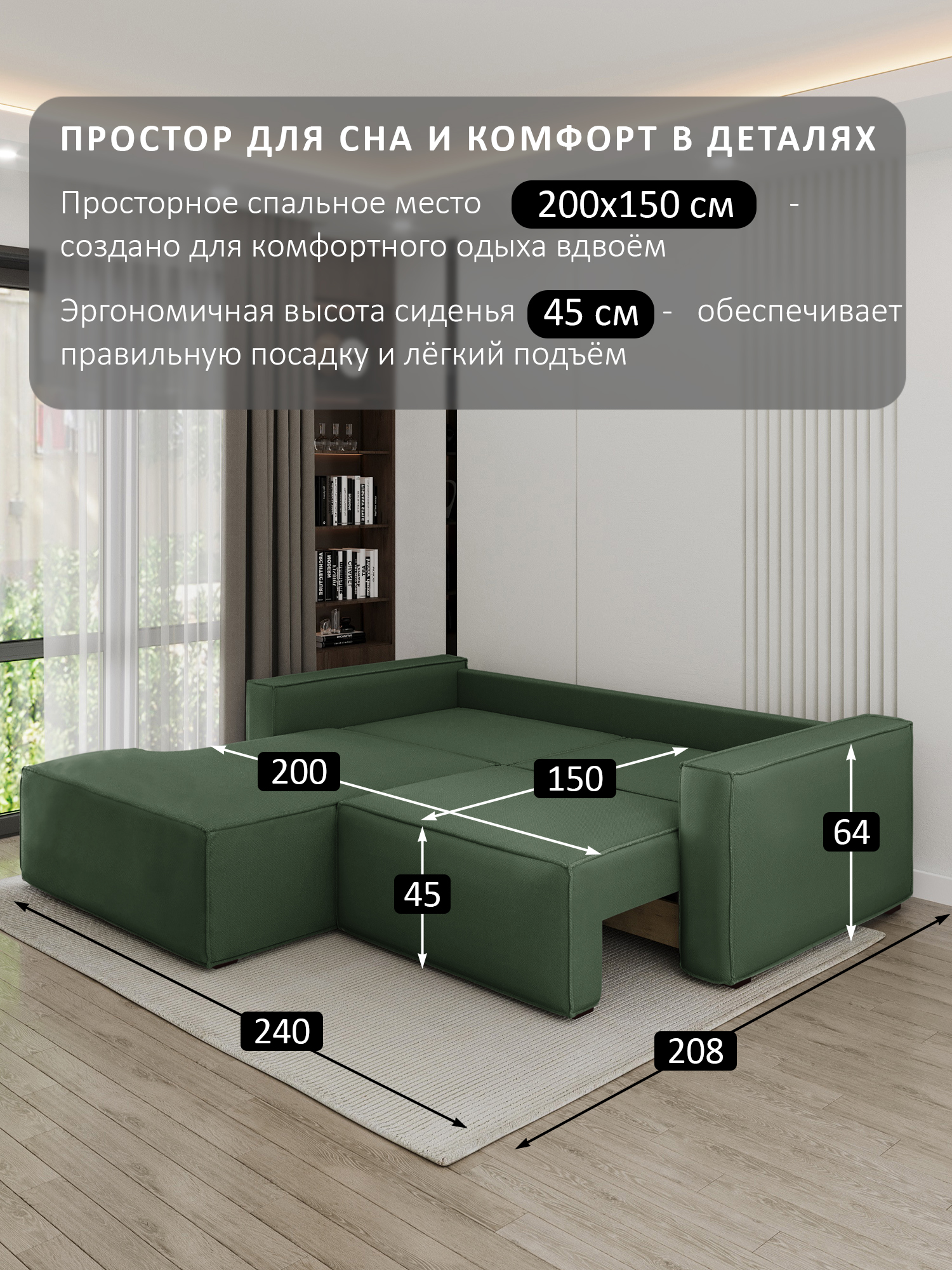 Размер спального места (ШхДхВ): 200х150х45