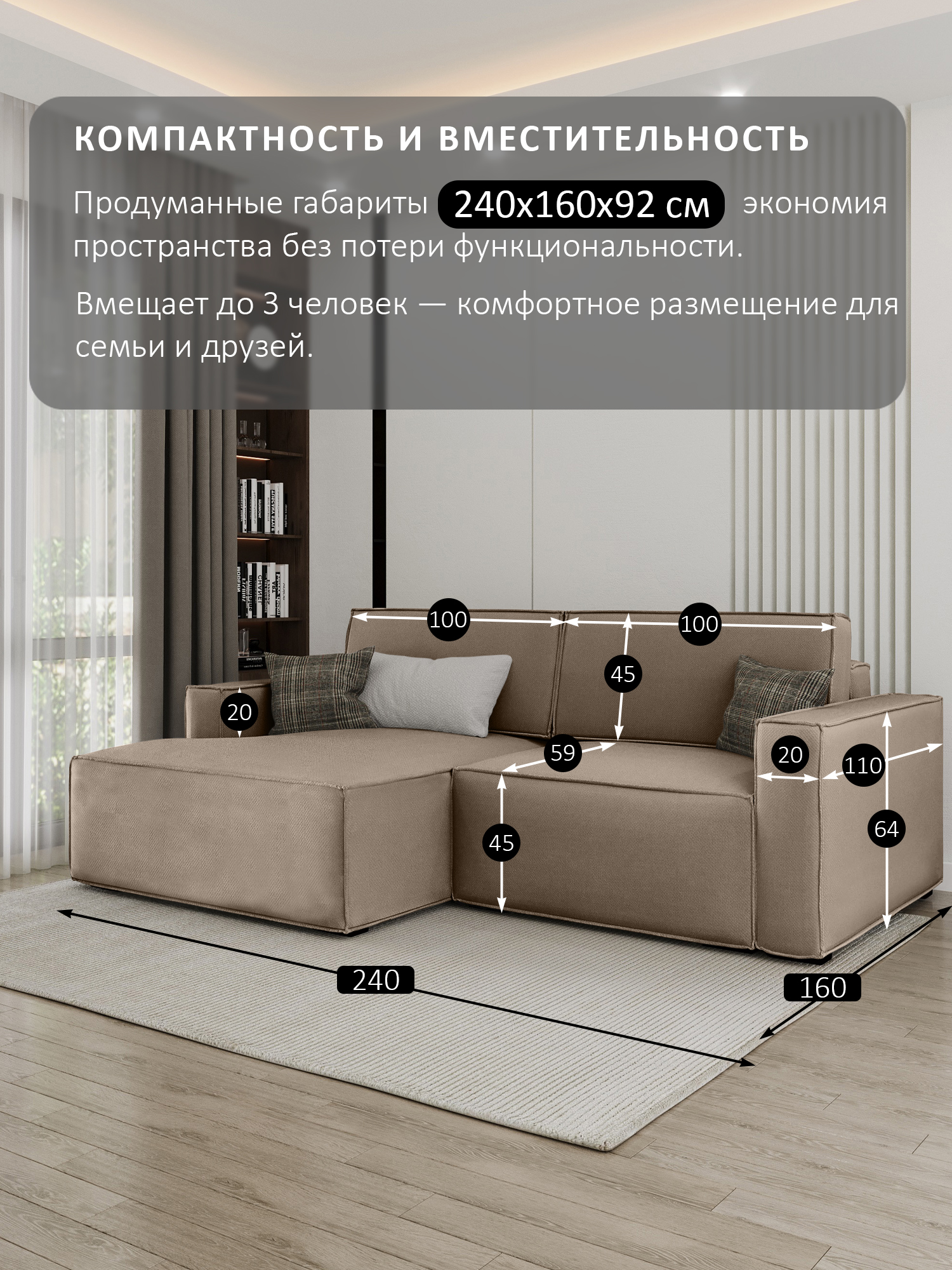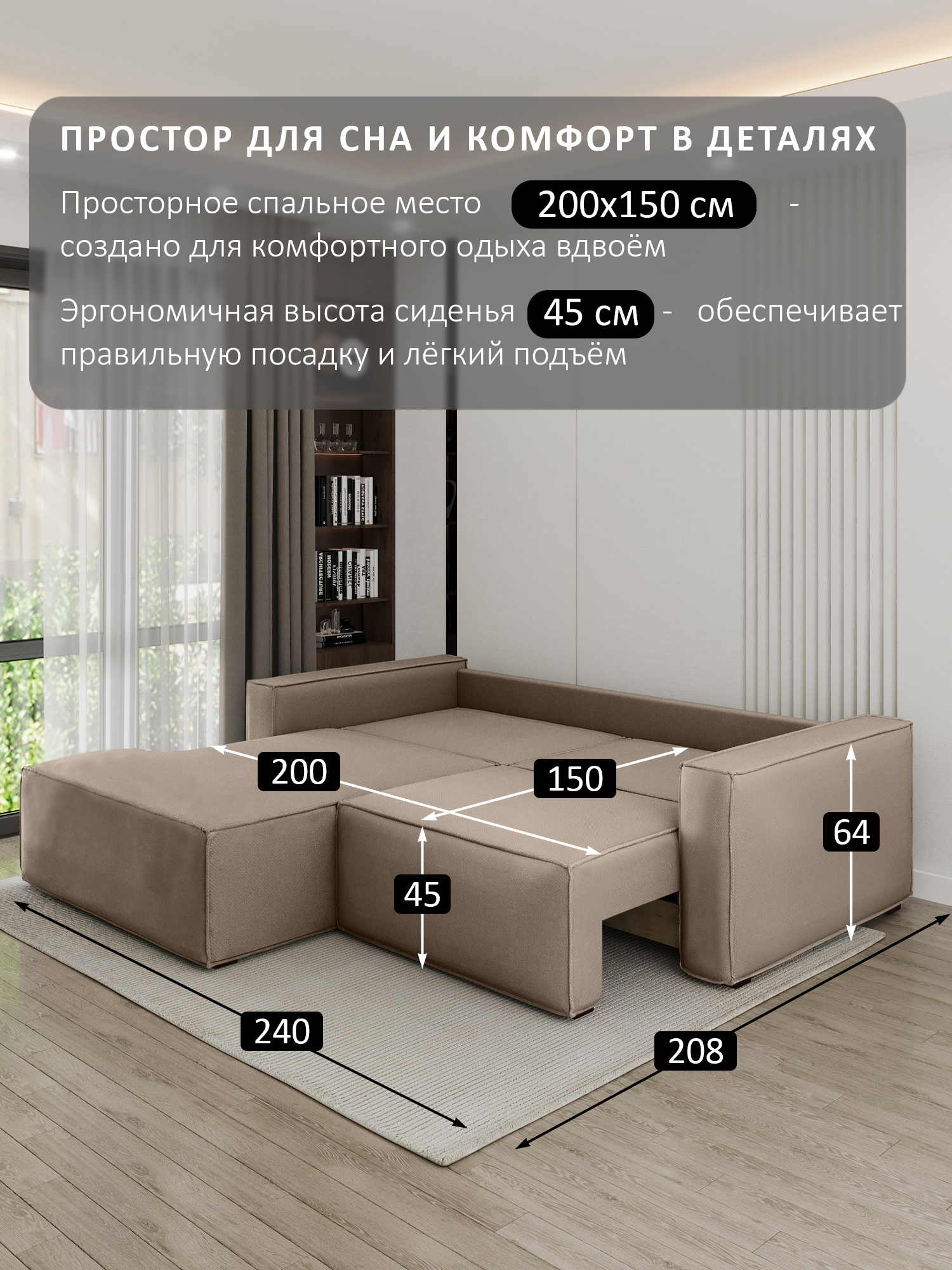 размер спального места (ШхДхВ): 200х150х45