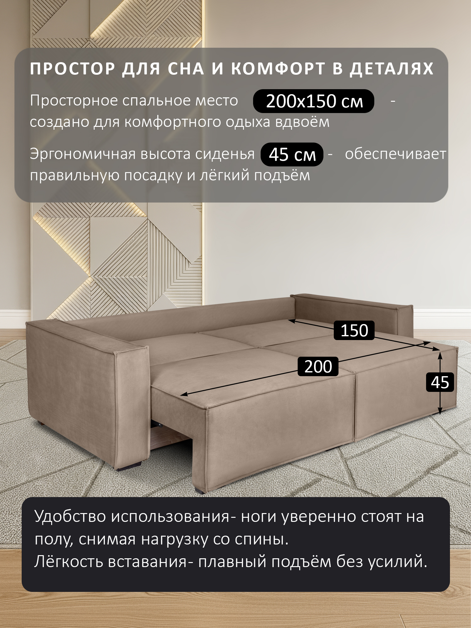 размер спального места (ШхДхВ): 145х200х48