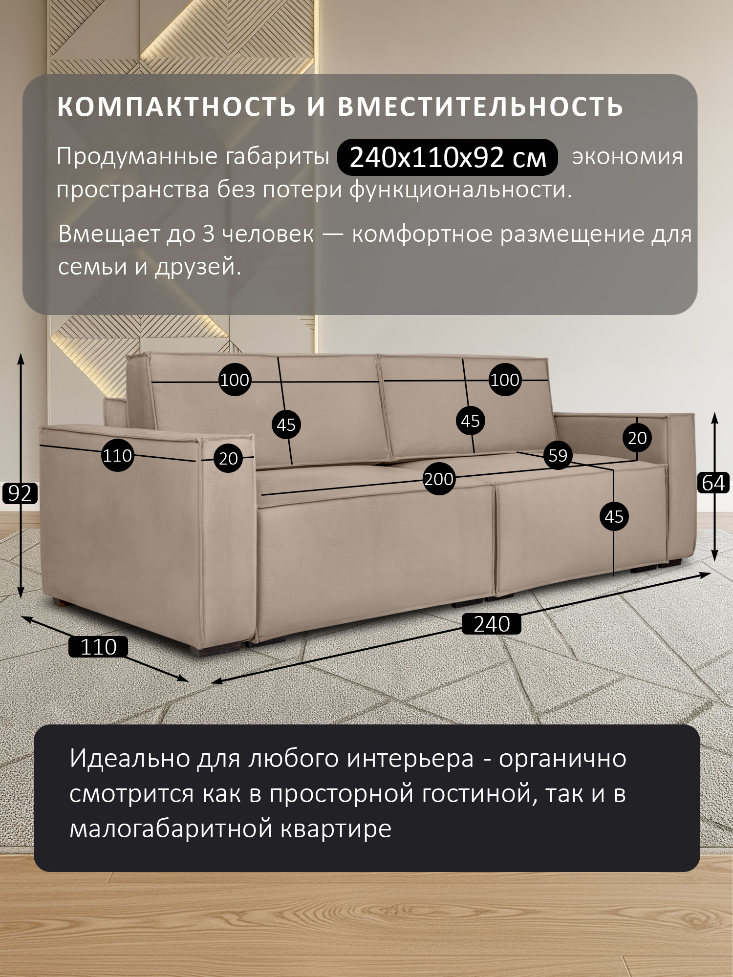 ДхГхВ: 215х99x100 см