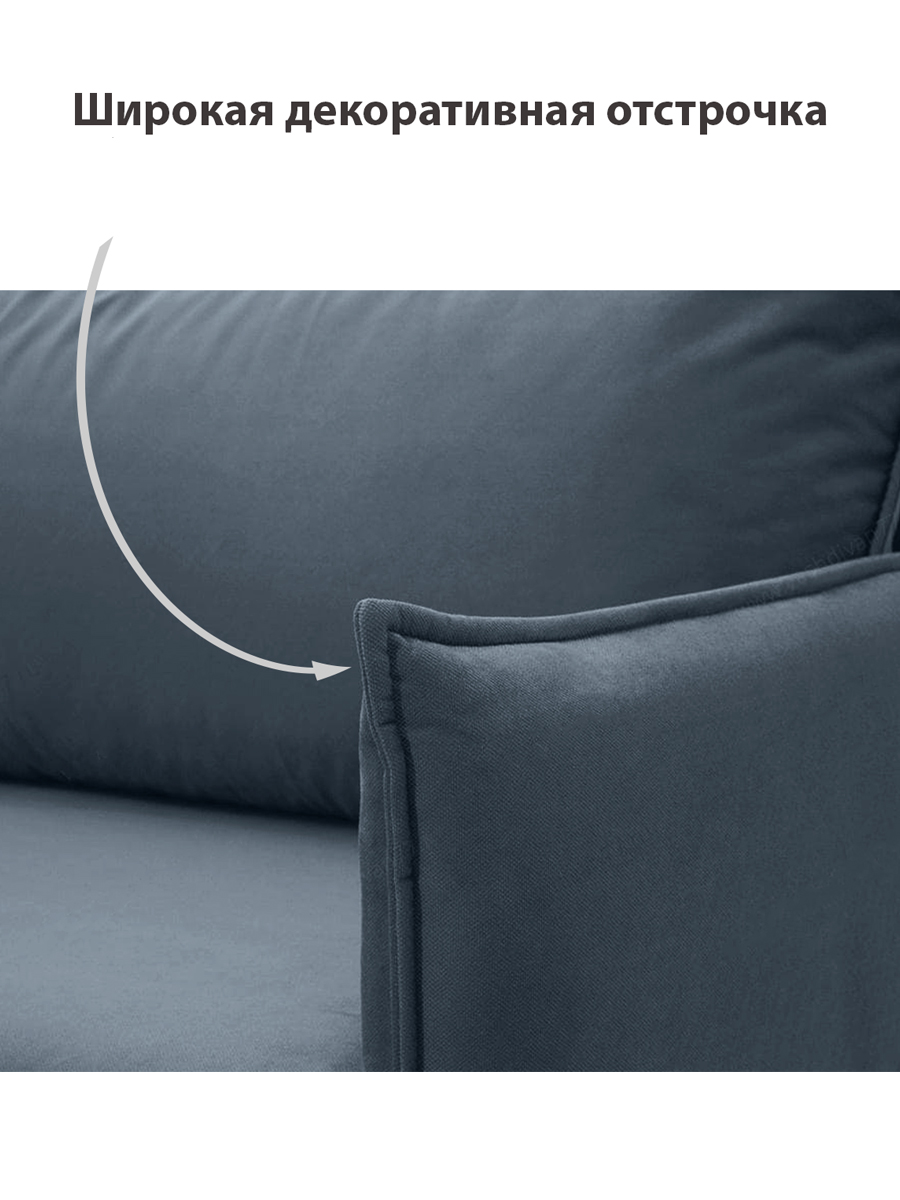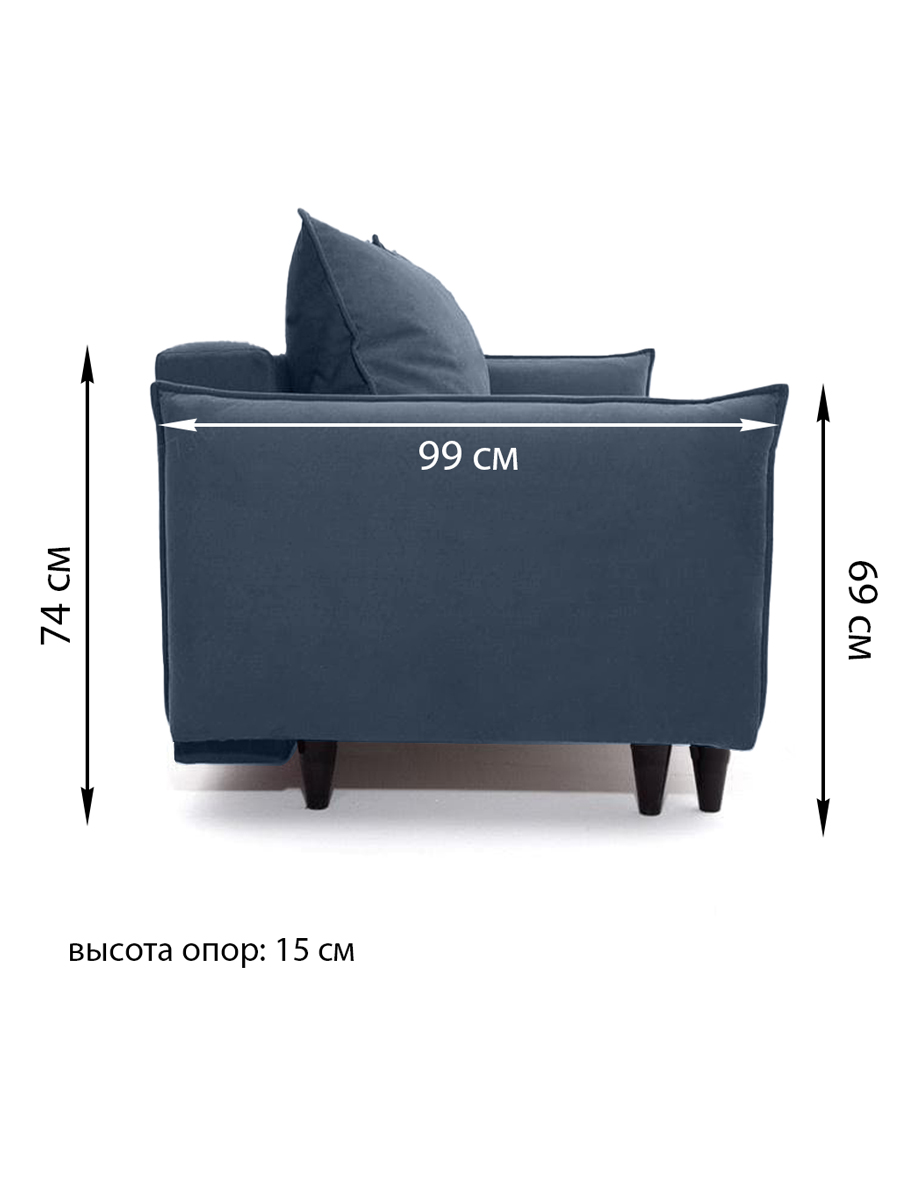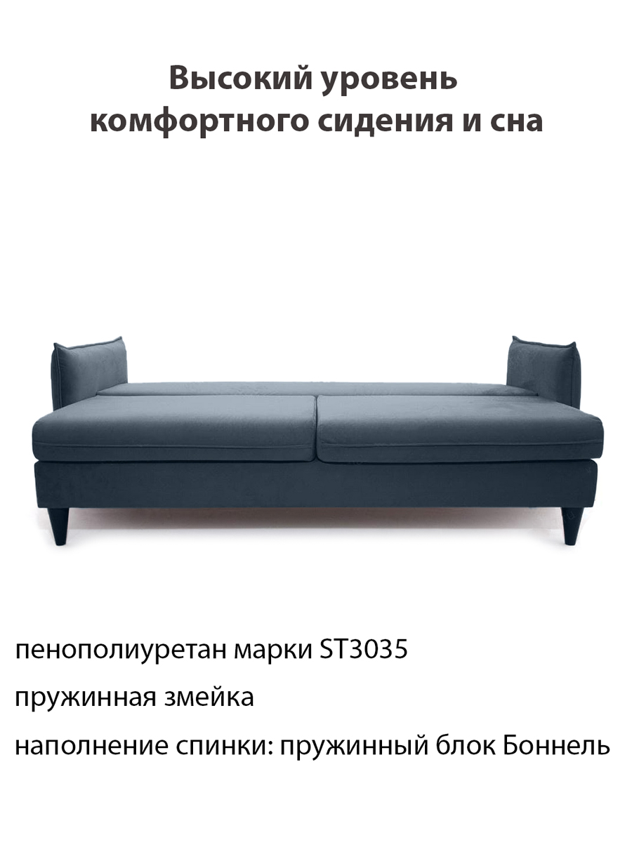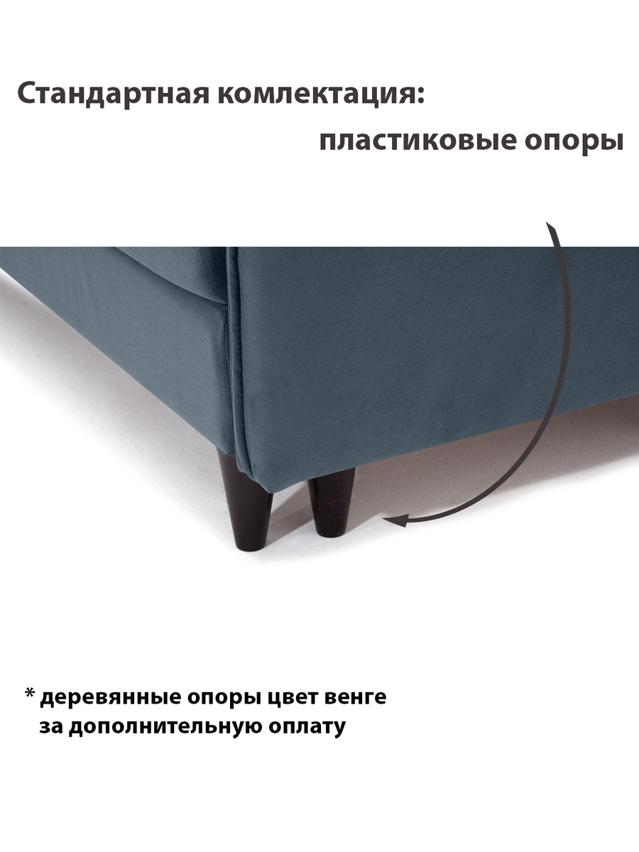 особенности: Наполнение сидения - пружинная змейка + ППУ ST30, наполнение спинки - пружинный блок Бонель, высота спального места 46 см, глубина до подушек 44 см, глубина без подушек 77 см, высота опор (ножек) 15 см, глубина спинки 20 см, высота спинки от пола 74 см, высота спинки от сидения 30 см, ширина подлокотника 12 см, глубина подлокотника 99 см, высота подлокотника от пола 69 см, в стандарте ножки пластиковые, замена на деревянные венге темный (черный) или бук + 1500 р.