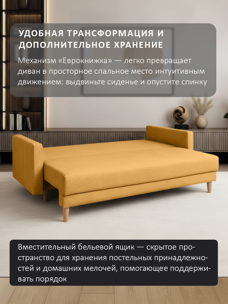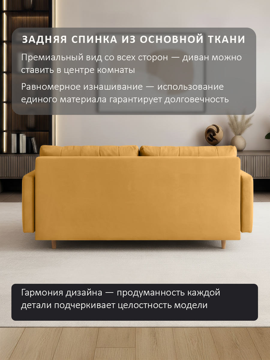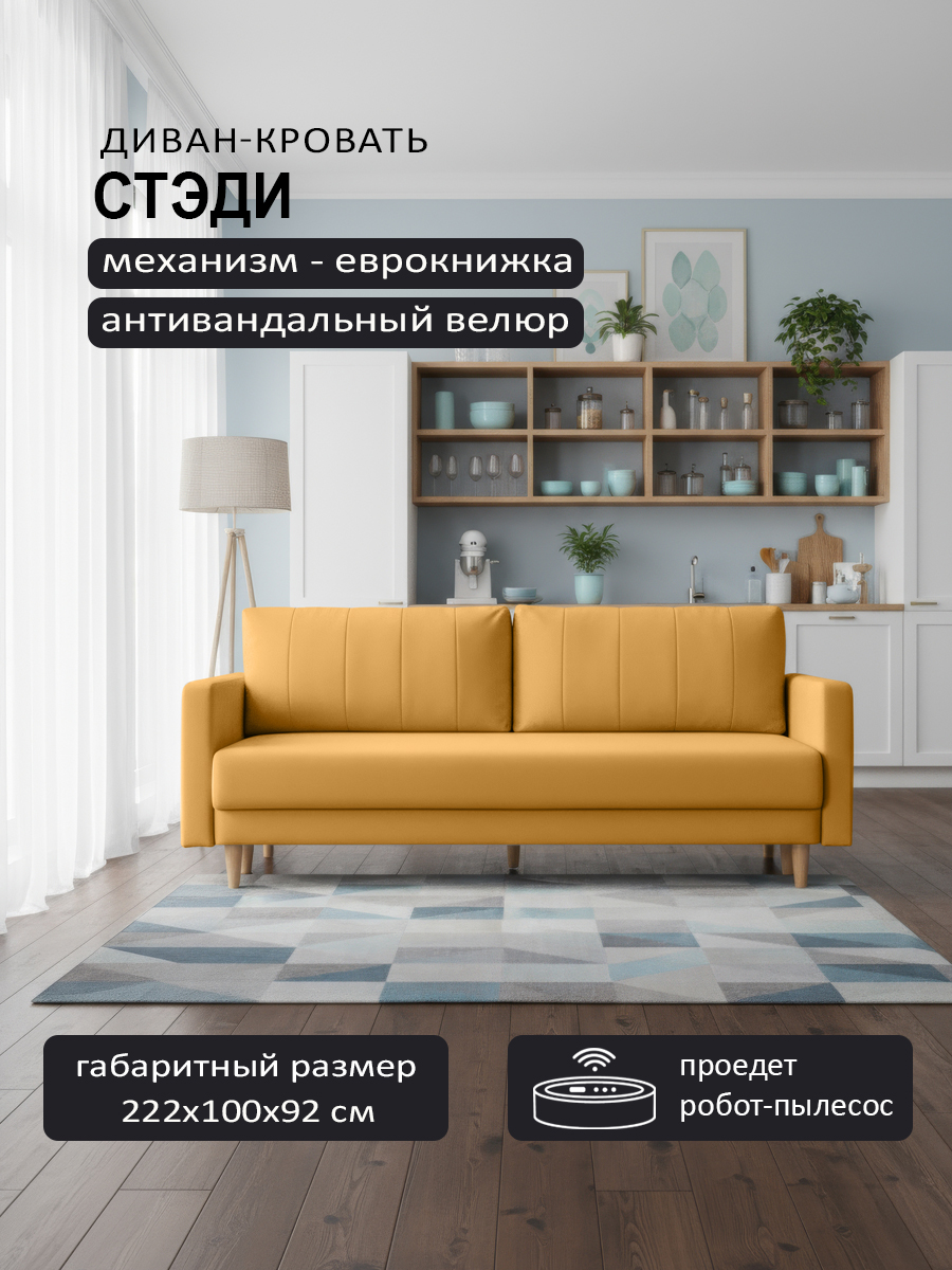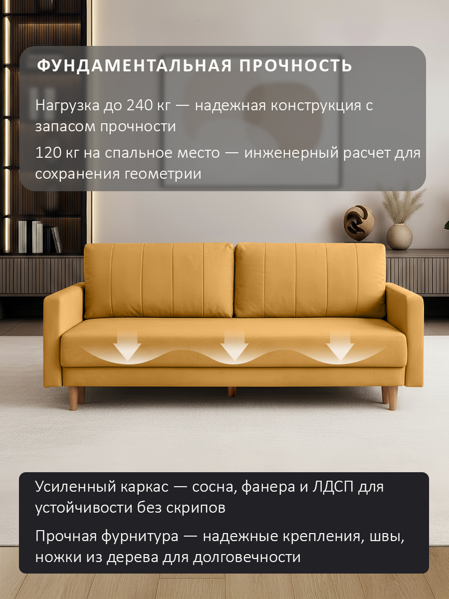 особенности: Высота подушек от сидения: 50 см, ширина каждой подушки 97 см, высота подлокотника от пола 67 см, высота подлокотника от сидения: 20 см, глубина сидения до подушки 57 см, глубина подлокотника 93 см, ширина подлокотника 12 см, высота опор 15 см.