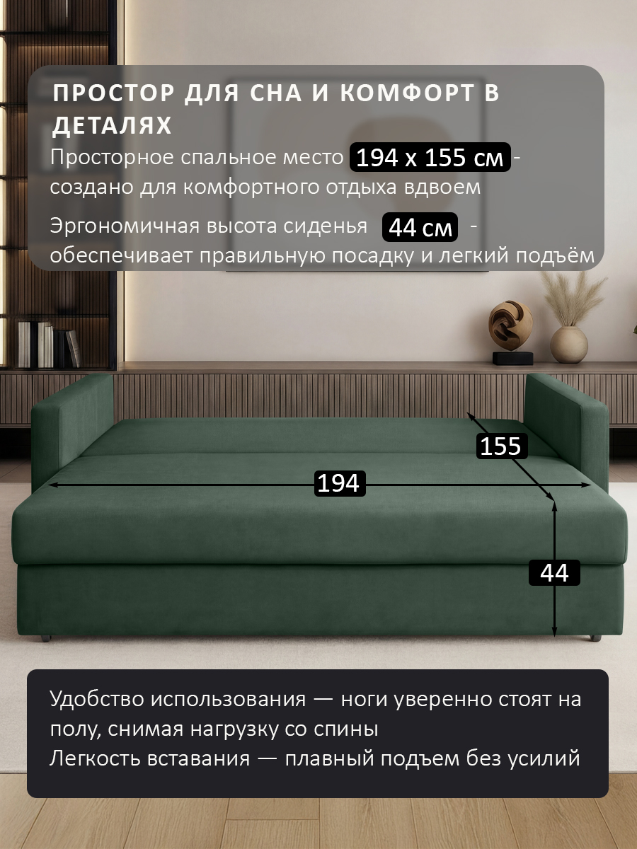 Размер спального места (ШхДхВ): 155х194х44